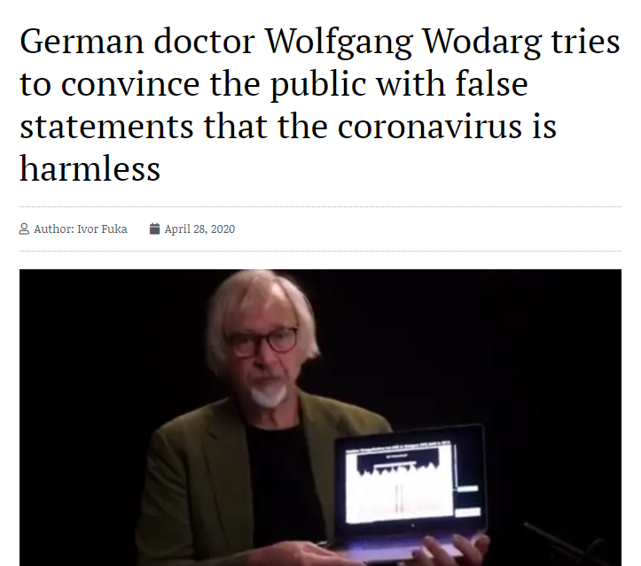 美國闢謠網站Snopes.com就曝光説,Yeadon曾在今年10月時宣稱新冠肺炎疫情“已經過去了”,而Wodarg則在今年3月時錯誤地宣稱新冠肺炎的危害“不會超過流感”。