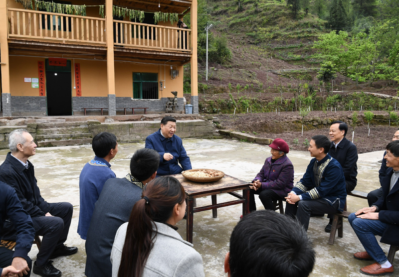 2019年4月15日,習近平在重慶市石柱土家族自治縣中益鄉華溪村同村民座談。