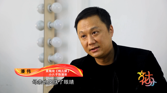 黃梅戲《鴨兒嫂》小六子飾演者 潘偉: 《鴨兒嫂》這個劇本,她的父輩跟我的父輩兩家是非常要好的朋友。(劇中)我自己家裏出現一些狀況,父親也去世,母親也哭瞎了眼睛。然後我自己老婆孩子都跑了,我幾次做生意都失敗。