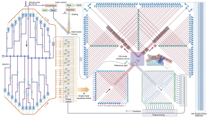“九章”量子計算原型機光路系統原理圖。圖片來源:中國科學技術大學官網