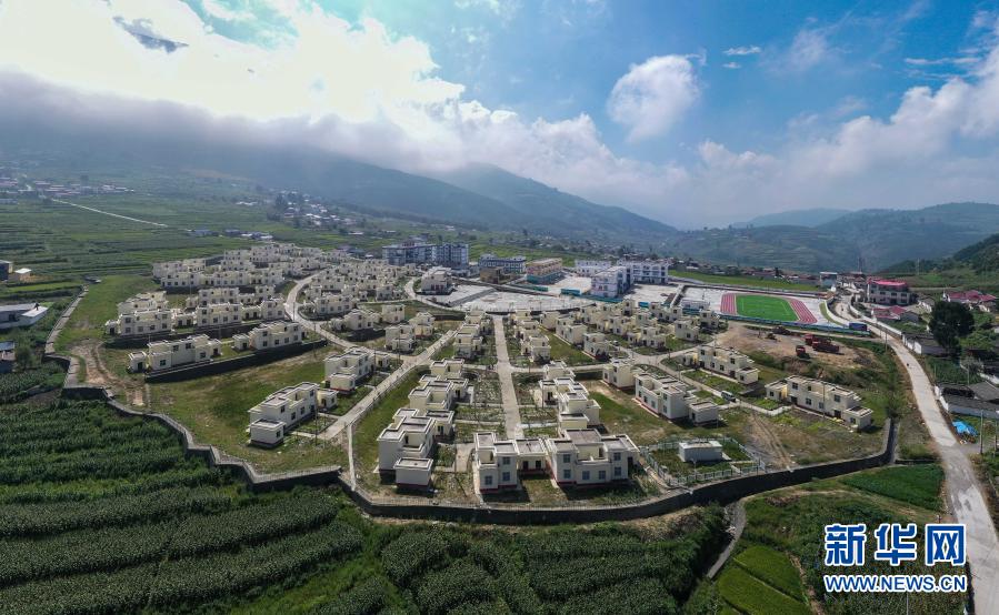 這是9月1日在四川省涼山彝族自治州喜德縣魯基鄉中壩村拍攝的易地扶貧搬遷安置點(無人機照片)。新華社記者 王曦 攝