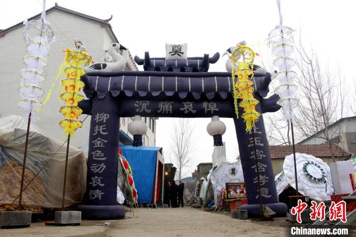 天空陰沉、薄霧瀰漫、雪花飄灑。14日,在山東省濟寧市微山縣韓莊鎮小房頭村街道上,百餘民眾神情肅穆、緩步前行,淚別抗戰老兵、南京大屠殺親歷者孫晉良。