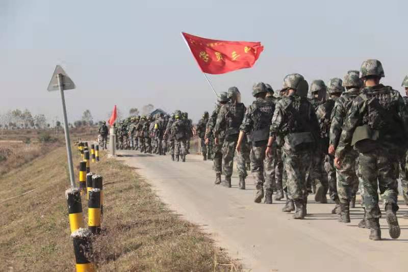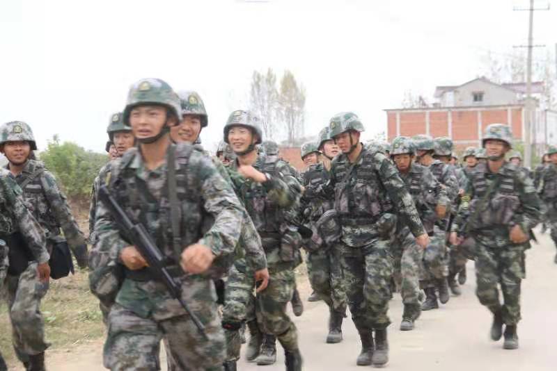 10天9夜的拉練,全程伴隨敵情,可謂突發情況頻發,戰味十足。200多公里的徒步行軍,既是對這些00後新學員體力、耐力的考驗,更是對戰場觀念、戰鬥精神的培塑。他們在完全陌生的地域,貼近實戰的環境中,突出對"走、打、吃、住、藏、攻、防、搜、救"等戰術環節的演練。一遍不行兩遍,反覆演練,提高訓練實效。導調組將課堂教育延伸到訓練場,堅持兵導、兵演。既有情況處置,又有戰術動作,更有戰場指揮,充分挖掘、調動新學員的積極性、創造性,增強他們的使命感、責任感。班用帳篷的搭設,從打樁、鋪地布、挖排水溝、置頂棚,到支四邊,既檢驗場地設置的合理性,又考察新學員的團結協作能力。單兵自熱食品剛打開,防空警報拉響了;剛脱衣躺下,緊急集合哨吹響了……腳起泡,挑破了,咬着牙忍着痛跟着隊伍繼續走,新學員們受盡了苦頭,但這些00後們堅持"輕傷不下火線",始終保持昂揚的士氣。