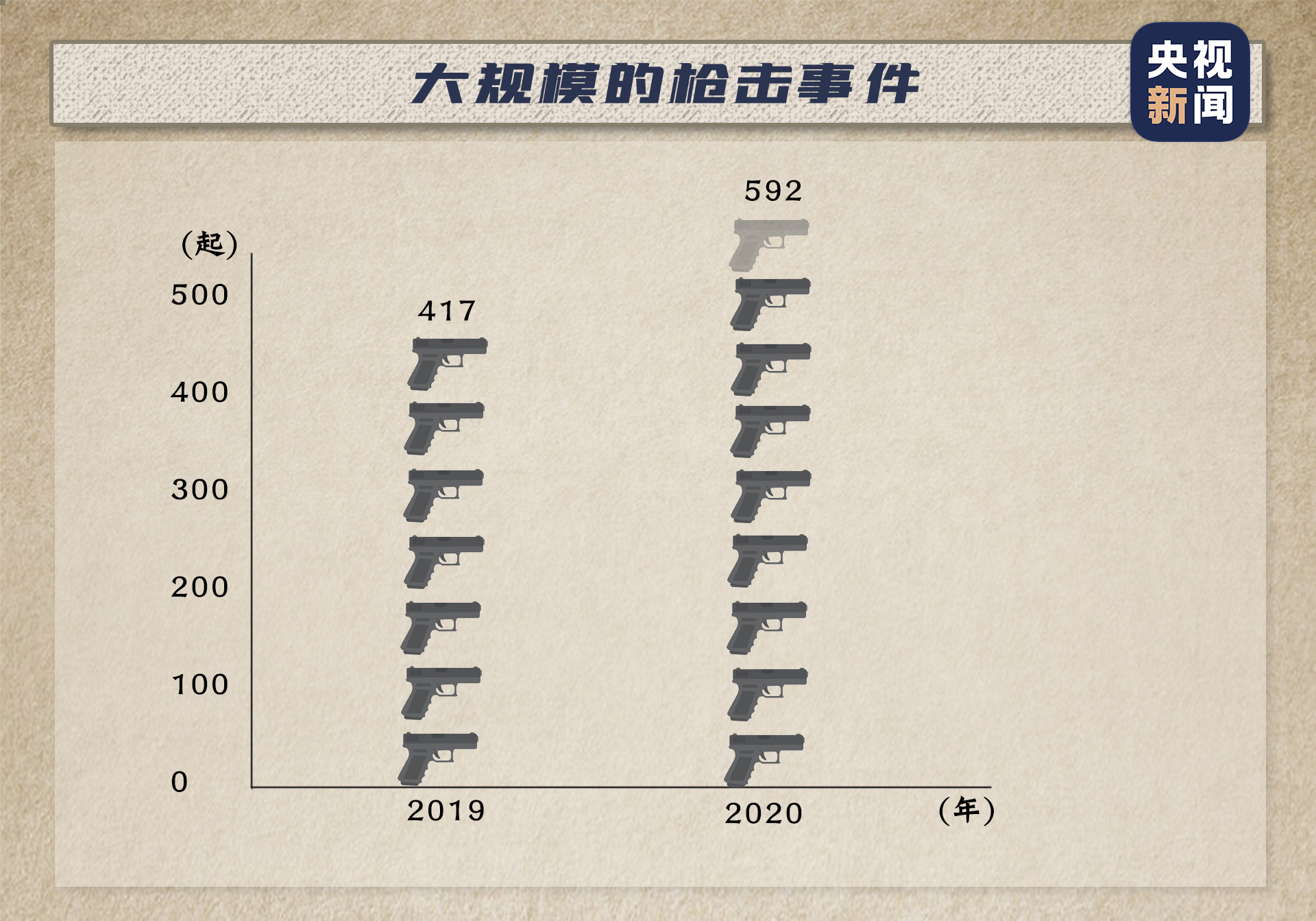 據美國槍支檔案網的數據,截至當地時間12月7日,2020年美國共有超過37000人受槍傷,相當於平均每天至少槍響108次。此外,與2019年相比,多個與槍擊有關的數據均超去年。