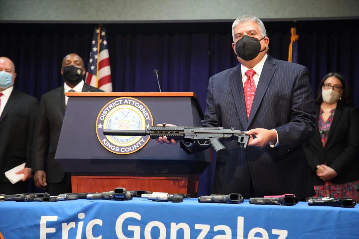 布魯克林地區檢察官埃裏克·岡薩雷斯在上個月指控包括一名地鐵運營商在內的4名男子密謀從南卡羅來納州和弗吉尼亞州運輸44件槍支。他在新聞發佈會上説,紐約市犯罪案件中繳獲的槍支約有70%來自南部各州。