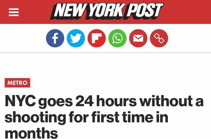“紐約市已經24小時沒有槍響了,這是數月以來的第一次!”11月24日,《紐約郵報》刊登了這樣一則新聞。是的,對於紐約市民來説,槍擊案早已不是什麼新聞。連紐約警察局也無法立即説出,上一個沒有槍擊事件出現的日子是什麼時候了。