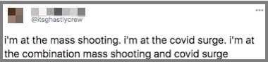 美國網友在社交平台上憤怒地寫下:“我活在槍擊之中,我活在新冠疫情中,我活在雙重夾擊中。”
