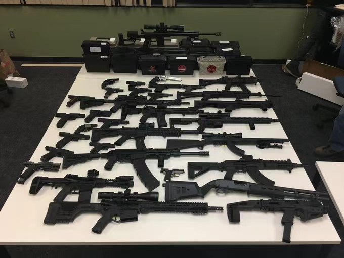 △今年五月,警方在加州千橡市一男子家中發現數支非法攻擊武器和能容納50發以上彈藥的大容量彈匣。