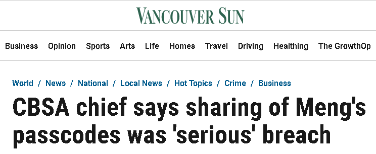 10日當天,温哥華當地報紙《温哥華太陽報》使用《邊境服務局主管説分享孟的密碼屬嚴重違規》的標題報道了古德曼如何處理下屬把孟晚舟手機密碼泄露給警方的事。
