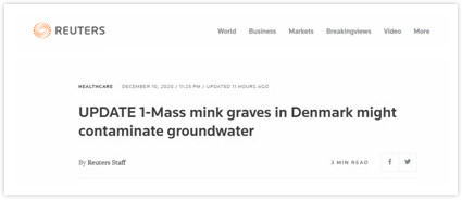 路透社:最新,大量水貂“墳墓”可能污染丹麥地下水