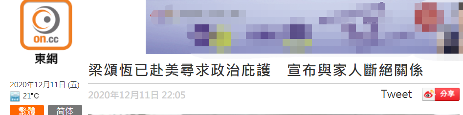 香港“東網”最新消息,曾以不堪字眼辱華,後因“宣誓風波”被褫奪立法會議員席位的亂港分子梁頌恆11日在社交媒體宣稱“與家人斷絕關係”。 “東網”援引消息説,梁頌恆將於明早(12日)在網上召開記者會,公開承認自己已離港。而今晚有消息稱,他已於11月30日離開香港,抵達美國華盛頓尋求庇護。
