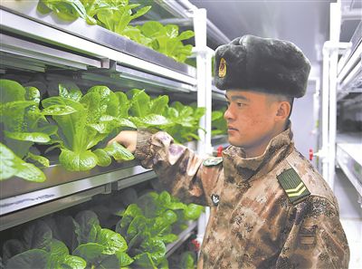 高原邊防連隊的“植物工廠”種出新鮮蔬菜。徐明遠 攝