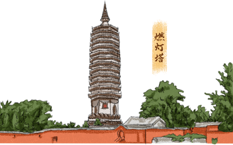 燃燈塔位於北京市通州區,始建於南北朝北周宇文時期,距今已有1400多年的歷史。為八角十三級密檐式實心磚塔,高約56米,是北京地區最高最大的塔。須彌座雙束腰,每面均有精美的磚雕。塔身正南券洞內供燃燈佛,故名燃燈塔。其餘三正面設假門,四斜面雕假窗。整座塔上共懸風鈴2224枚,雕鑿佛像415尊。塔剎為八角形須彌座,上承仰蓮,再上為相輪、仰月、寶珠。此塔距潞河數百米,然而倒影垂映河中,為世人稱奇,故乾隆有“郡城塔景落波尖”詩句。