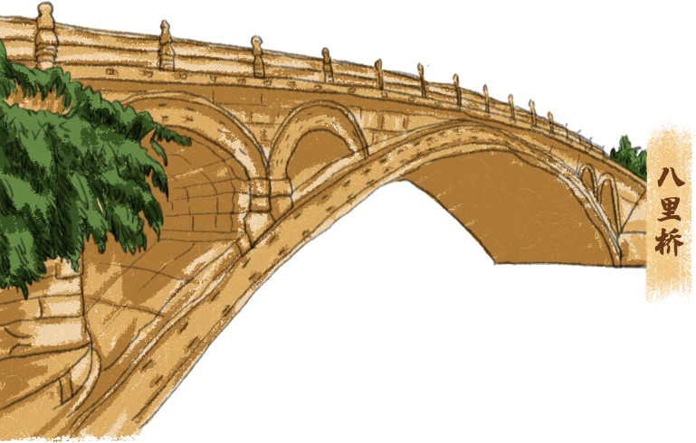 八里橋長30米,寬16米,為石砌三孔拱券形,中間有一個大跨度的橋拱,兩邊各有一個小型的橋拱。這種構造是專為漕運的需要而設計。通惠河運糧船多為帆船,將中孔建造得高聳,漕船即可直出直入,因此有“八里橋下不落桅”之説。
