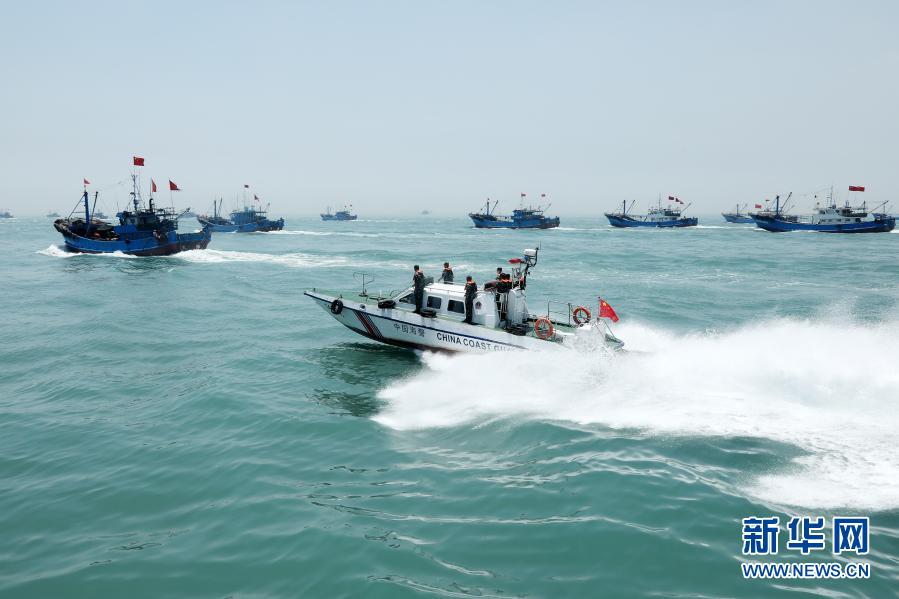 海警執法員加強海域巡邏,防止黑惡勢力滋擾作業漁船(8月16日攝)。新華社發(翟少華 攝)