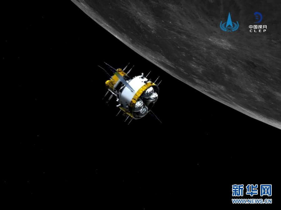 軌返組合體與上升器分離前模擬圖。記者從國家航天局獲悉,北京時間12月6日12時35分,嫦娥五號軌道器返回器組合體與上升器成功分離,進入環月等待階段,準備擇機返回地球。新華社發(國家航天局供圖)