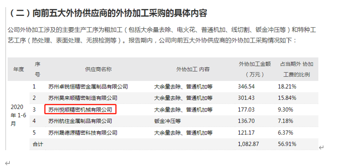 此外,根據《審核問詢函的回覆》中披露,“蘇州悦順精密機械有限公司”一直都是邁信林的前五大外協供應商,2019年交易金額達452.9萬元。根據公開信息顯示,“蘇州悦順精密機械有限公司”的唯一股東是自然人孫良亮,此人還是“蘇州銀辰林精密機械有限公司”的監事及持股45%的股東。