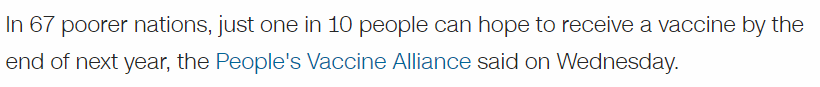 伊朗主要是因為美國的制裁措施而難以獲得疫苗,可許多並未受到制裁的國家同樣面臨着沒有疫苗可用的困境。
