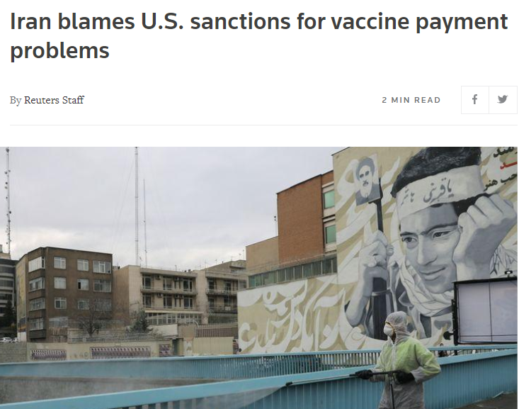 全球新冠肺炎疫苗實施計劃(COVAX)發言人説,除了法律問題之外,金融公司和其他企業也不願與伊朗合作,“可能需要兩到三倍的時間”才能完成交易。分析人士表示,除非這些限制被取消,否則伊朗在獲取疫苗方面可能面臨更危險的延遲和進一步的阻礙。