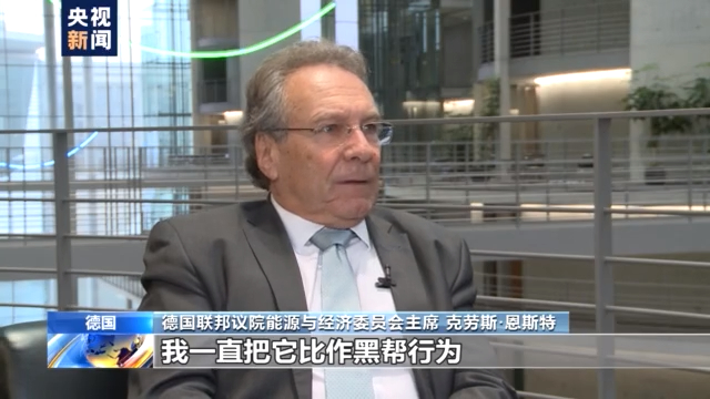 *德國聯邦議院能源與經濟委員會主席 克勞斯·恩斯特:*美國的制裁是一種勒索,我一直把它比作黑幫行為。美國的行為並不符合德國的利益,而是出於其自身目的,歐洲不想要購買美國的頁岩氣,德國完全不想要。這意味着美國利用其經濟強權,和政治強權干預德國的經濟需求,這是我們完全不可接受的。