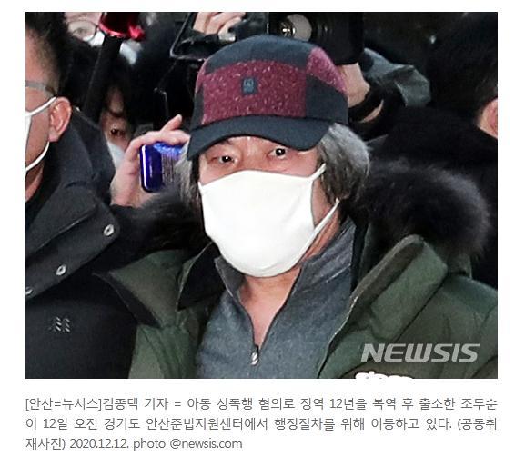 中新網12月12日電 據韓媒報道,12月12日,韓國電影《素媛》原型罪犯趙鬥淳完成12年刑期,刑滿出獄。他在韓國京畿道安山保護觀察所完成相關手續後,於當地時間當日上午8點55分左右,抵達自己位於安山市的住所。