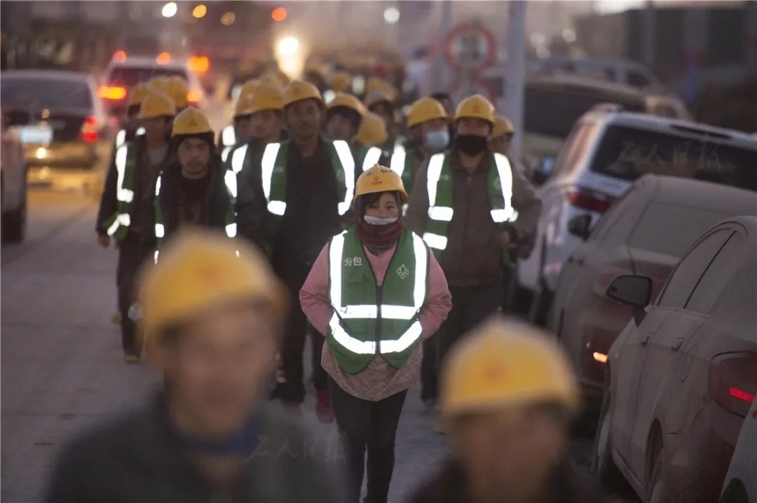 12月3日傍晚,浩浩蕩蕩的工人隊伍走在前往工友集市和宿舍的通道上。