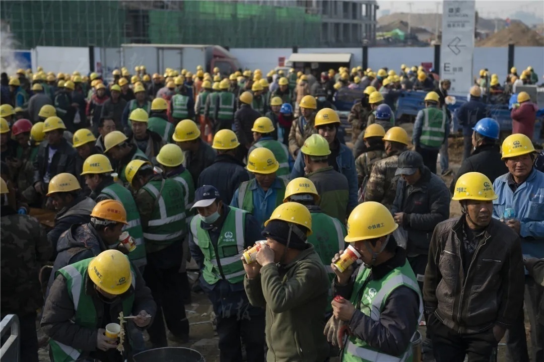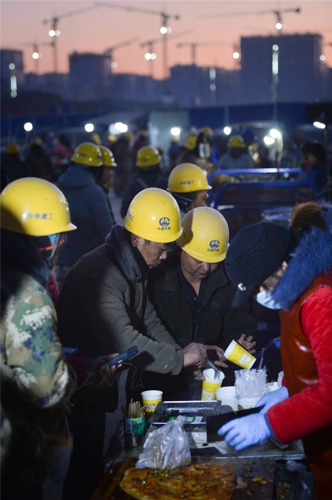 12月4日黎明,在容東片區E組團安置房項目部不遠處,工人們排隊購買早餐。