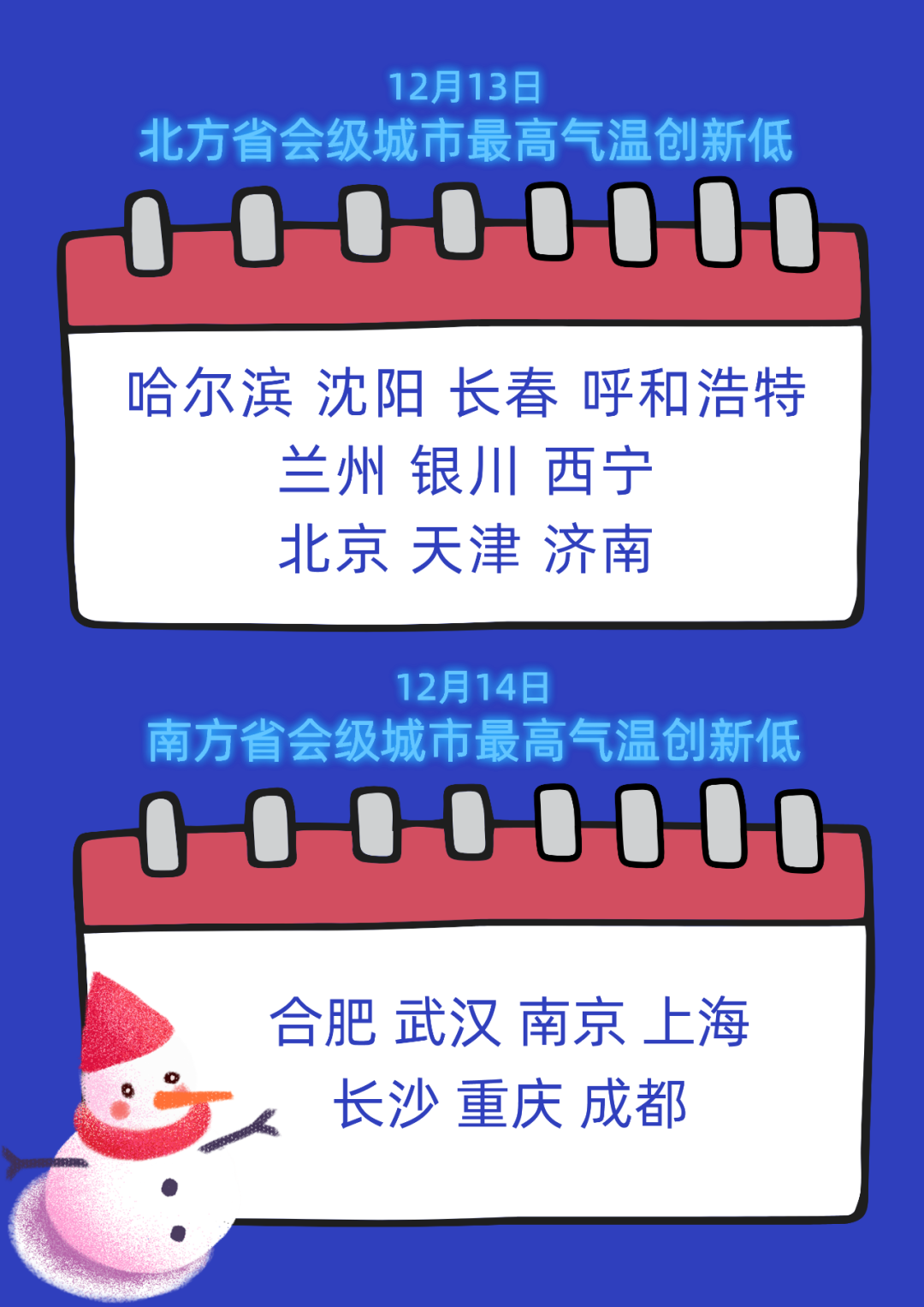 降温過後,全國大部地區的寒冷程度可與“三九四九”相比,像東北最高氣温會降至-10℃左右,西北地區東部、華北、黃淮最高氣温0℃左右,江淮、江漢、江南多地最高氣温只有5℃左右。