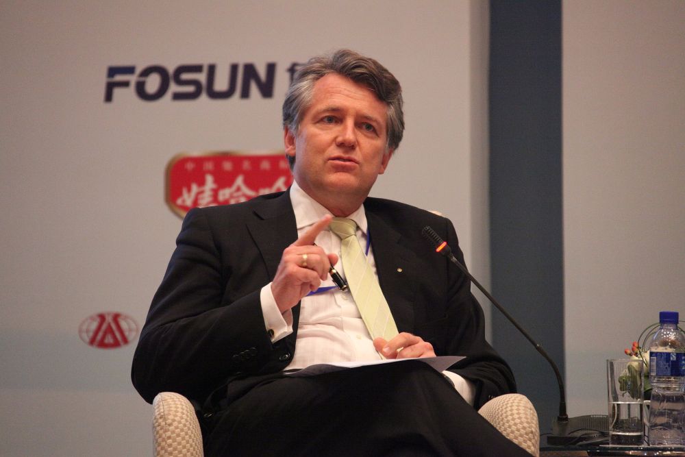 2009年7月3日,中國歐盟商會主席伍德克在北京舉行的全球智庫峯會發表演講。(新華社記者邢廣利攝)
