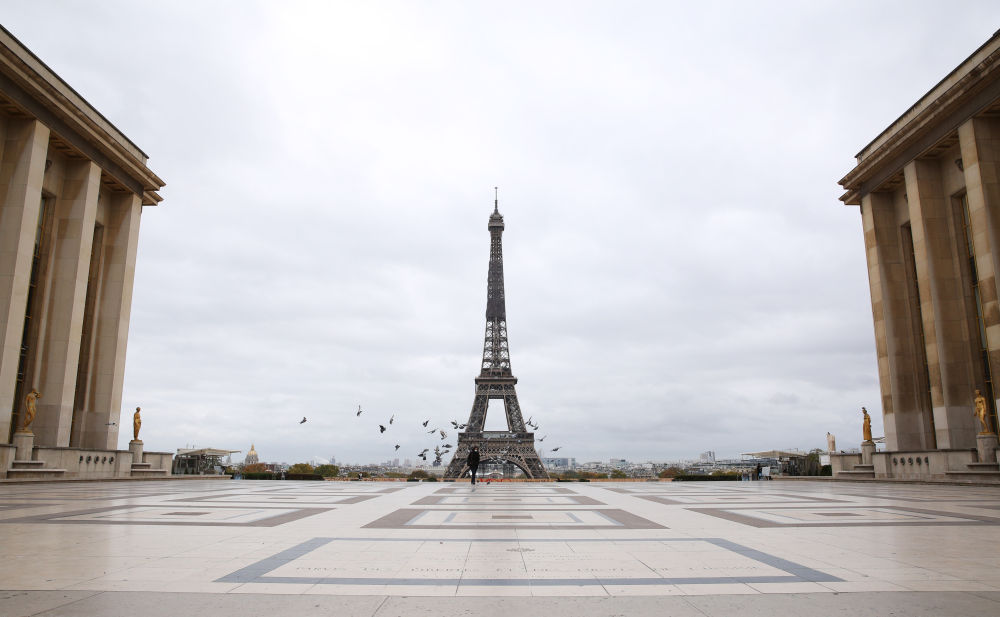 10月30日拍攝的法國巴黎埃菲爾鐵塔附近的特羅卡德羅廣場。(新華社記者高靜攝)