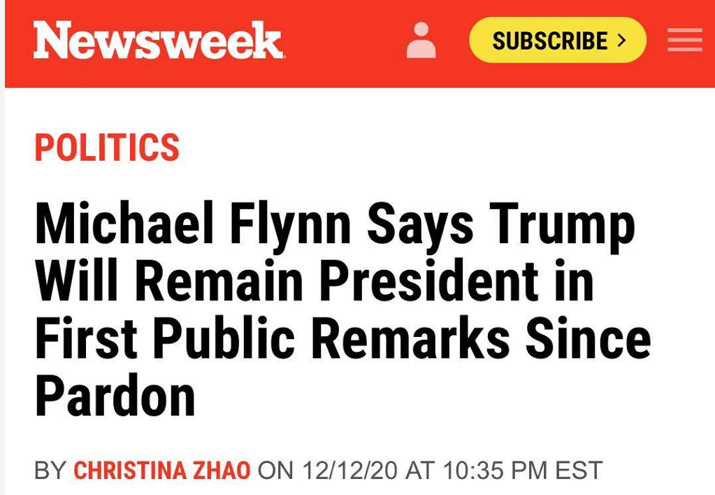 【環球網報道 記者 趙建東】“邁克爾·弗林被赦免後首次公開講話,稱特朗普將繼續擔任總統”,美國《新聞週刊》13日報道稱,美國前國家安全顧問弗林當地時間12日在華盛頓參加了特朗普支持者舉行的抗議集會上,表達了對特朗普連任總統的信心。