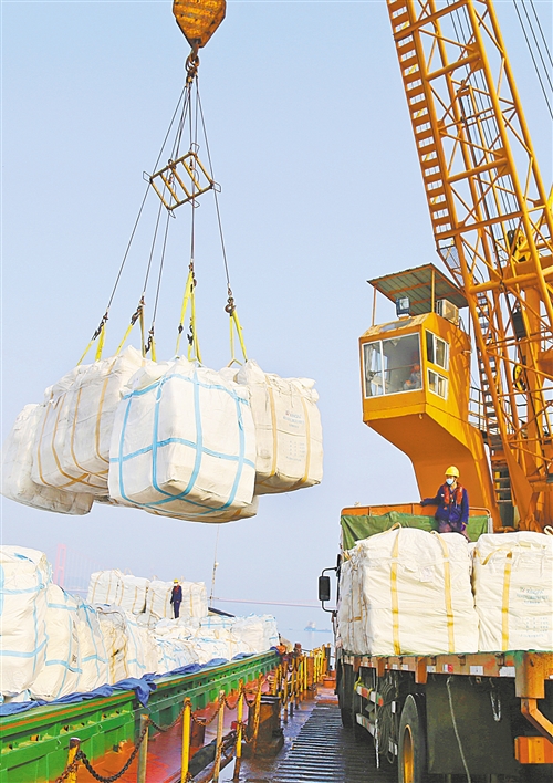 12月10日,湖北省宜昌市興發集團新材料產業園,員工在裝運草甘膦產品,該批產品將通過長江黃金水道出口到南美洲。今年前三季度,興發集團搶抓外貿出口商機,全集團出口創匯4.2億美元,同比增長7%。經濟日報-中國經濟網記者 柳 潔攝