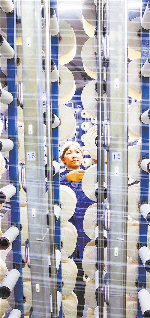 12月9日,位於江蘇省海安市立發街道的江蘇聯發紡織股份有限公司,員工在加工出口的紡織品。當地紡織企業瞄準市場需求,加大產品研發力度,開發的新產品出口東南亞、歐美等國家和地區。向中林攝