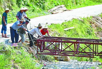 烏英苗寨新建的風雨橋、在建的懸索橋以及蘆笙島。