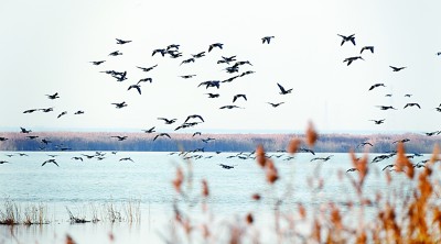 初冬,越來越多的灰雁遷徙到天津七里海濕地。陳建平攝