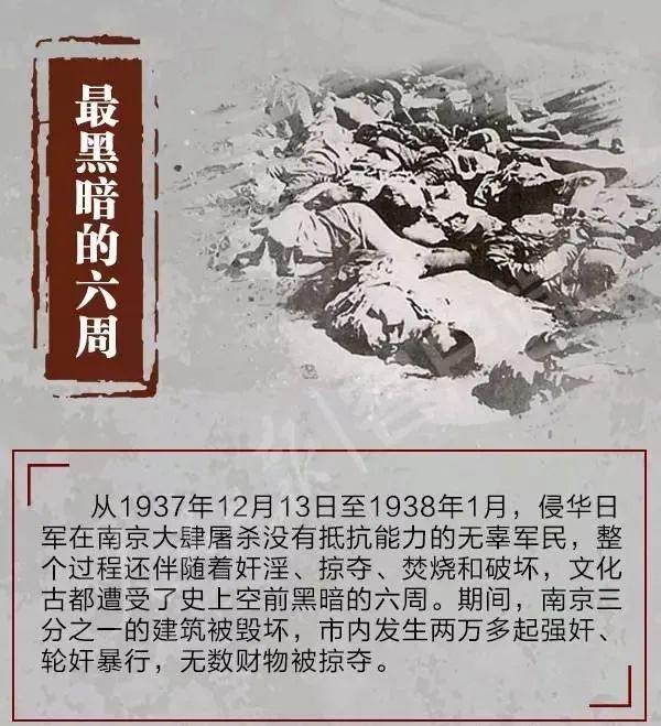 △1937年底,進入南京的日軍將中國軍民送到下關江邊以機槍掃射,屍體堆滿了江邊,慘不忍賭,行兇後的日軍站在屍體旁,若無其事。