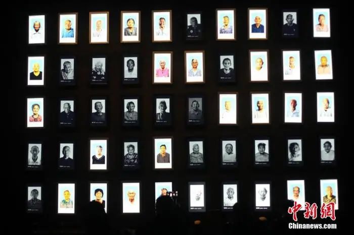 圖為侵華日軍南京大屠殺遇難同胞紀念館倖存者照片牆。中新社記者 泱波 攝