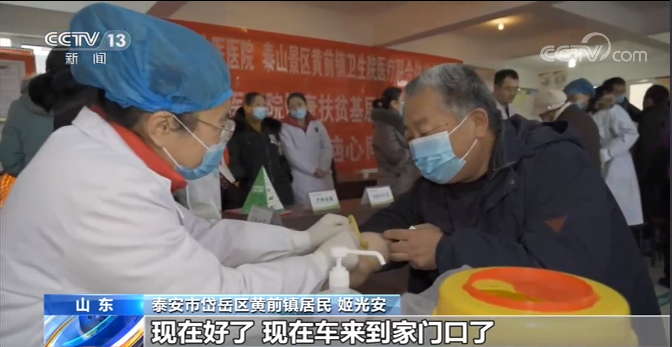 山東省泰安市岱嶽區黃前鎮居民 姬光安: 平時去鎮上看病取藥不是很方便,現在好了,現在車來到家門口了。