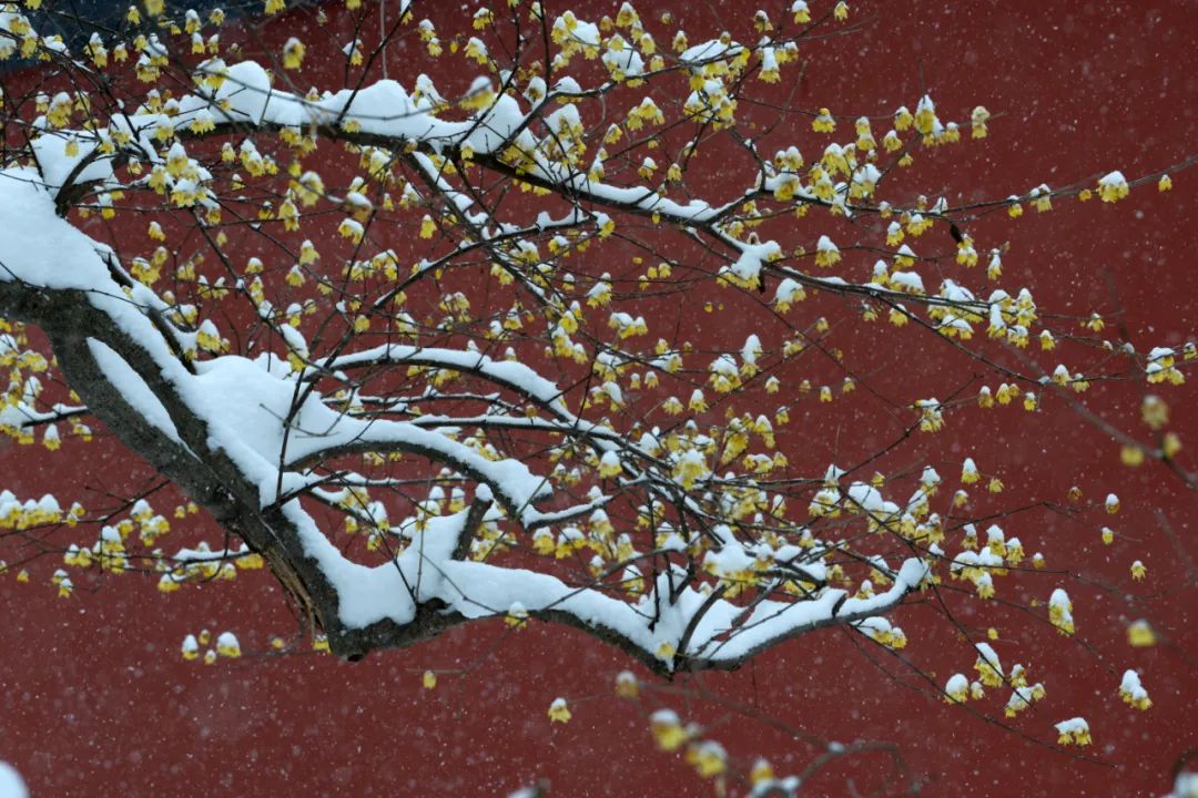 這是2018年1月27日在南京市明孝陵景區內拍攝的雪中梅。新華社發(王躍武 攝)
