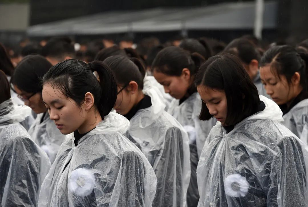 2016年12月13日,學生代表在南京大屠殺死難者國家公祭儀式上默哀。新華社發