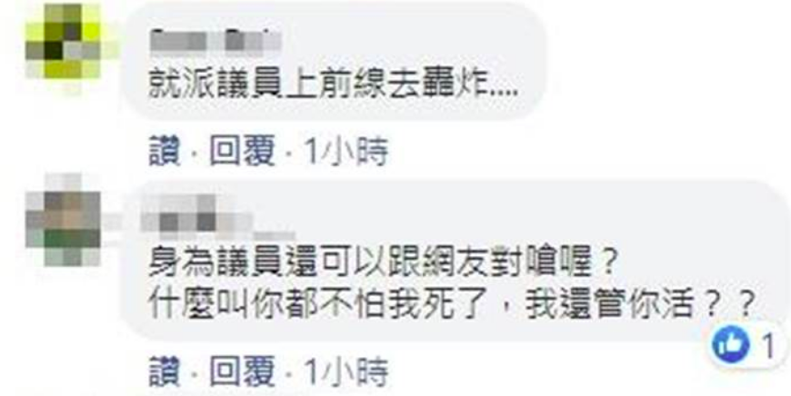 還有網友説:“應派議員上前線去。”↓