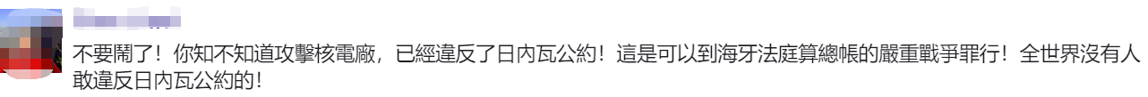 有網友問,議員知不知道攻擊核電廠,已經違反了日內瓦公約?↓