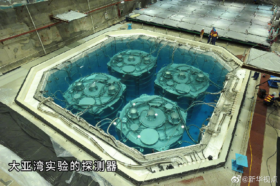新華社深圳12月12日電(記者陳宇軒、温競華)隨着停止運行的按鈕被按下,實驗大廳的水池外罩緩緩打開,浸在碧藍色高純水中的4箇中微子探測器出現在人們眼前。歷經4年醖釀、4年建設、9年運行取數的大亞灣反應堆中微子實驗裝置12日完成科學使命、正式退役。
