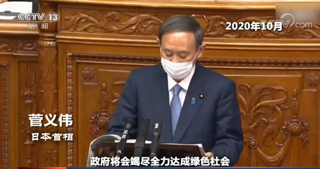 日本首相 菅義偉: 政府將會竭盡全力達成綠色社會,具體目標是在2050年前,實現碳中和,讓日本成為淨零碳排放國家。