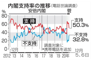 12月底,菅義偉政府成立即將滿100天,這段時間被日本媒體形容為民眾寬容度較高的“蜜月期”。但根據最新民調顯示,目前菅義偉內閣的支持率已跌至50.3%,較上個月下降了超過10個百分點。55.5%的調查對象認為政府的防疫措施不夠充分,76.2%的調查對象認為,政府應優先考慮防控疫情而不是刺激經濟。