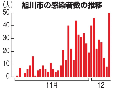 近期,旭川市的醫療機構等地暴發了至少8起聚集型感染事件,導致12月以來的確診病例數激增。