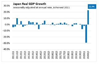 根據日本政府8日公佈的第三季度經濟數據,第三季度日本實際GDP環比上升5.3%,這被看作是經濟下跌後的恢復性增長。