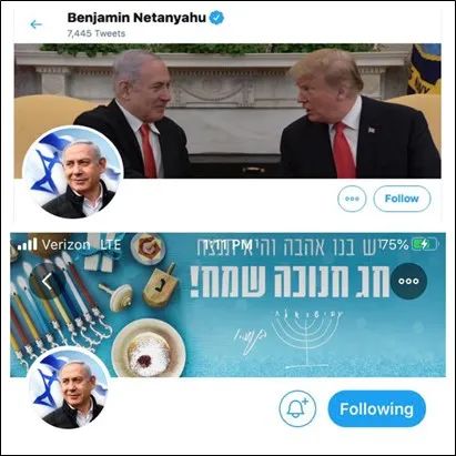 剛剛,不少眼尖的媒體人和網友發現,在以色列總理內塔尼亞胡的推特上,那幅他和特朗普合影的封面已經被替換掉了。
