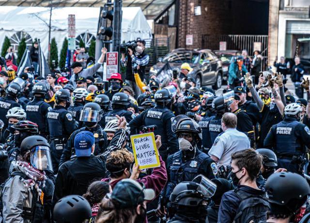 美國警察將抗議者及其反對者分開 圖源:美媒