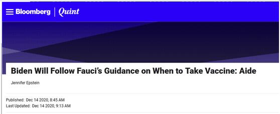 拜登不是第一次作出上述表態,彭博社稱,幾個月來,拜登多次稱將聽取福奇有關新冠疫苗安全性的建議,並將在上任後繼續留心福奇建議。